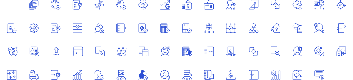Voor de nieuwe website van Hosted.nl, die helemaal vanaf nul opgebouwd zou gaan worden, werd mij de vraag gesteld of ik aan de slag kon gaan met het ontwerp voor een set iconen. In totaal zou dit gaan om zo'n 100 product iconen en 100 functie iconen in de stijl van hun huisstijl.